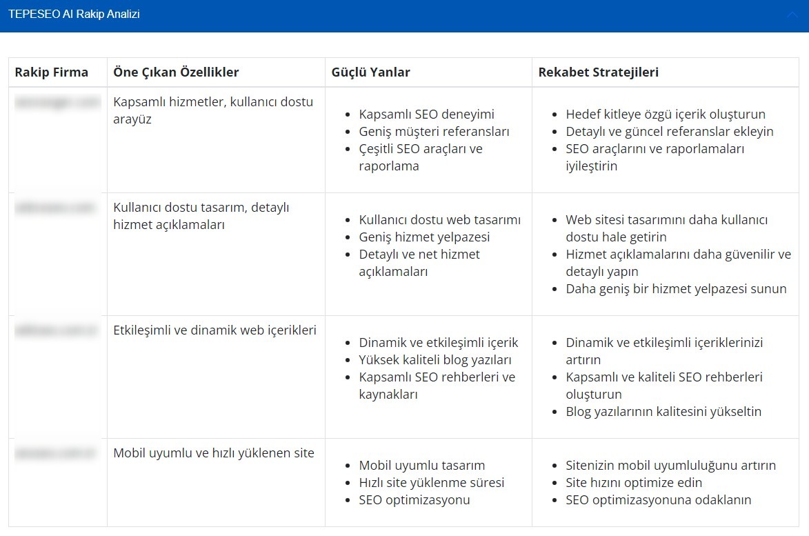 TEPESEO AI Yapay Zeka Destekli Rakip Analizi